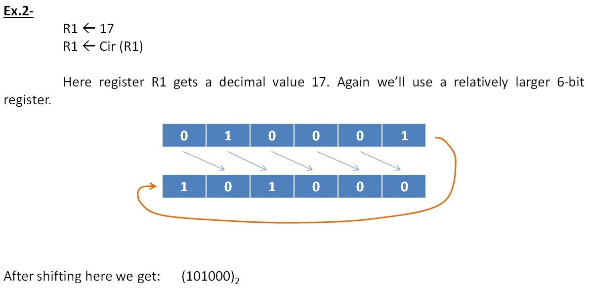 Circular Right Shift: Every bit gets shifted towards right. The right most bit (LSB) extracts and gets appended to the MSB position.