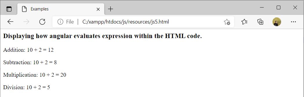 Displaying how angular evaluates expression within the HTML code.