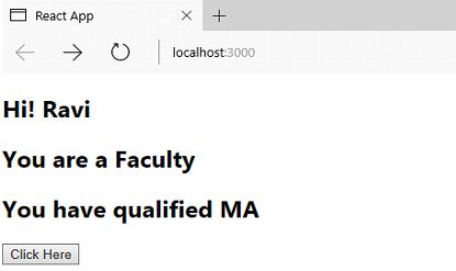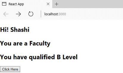 setState();.name and qlf are being changed here keeping designation intact.this.clickMe statement.The output of this code is: