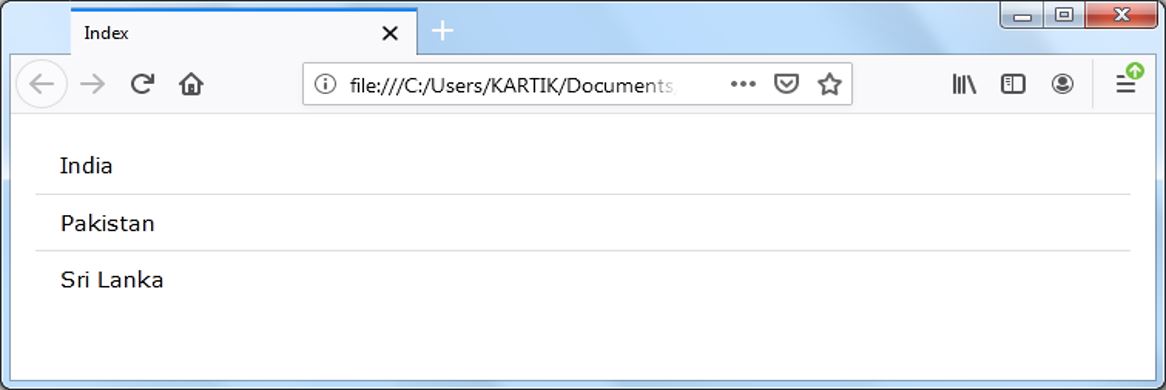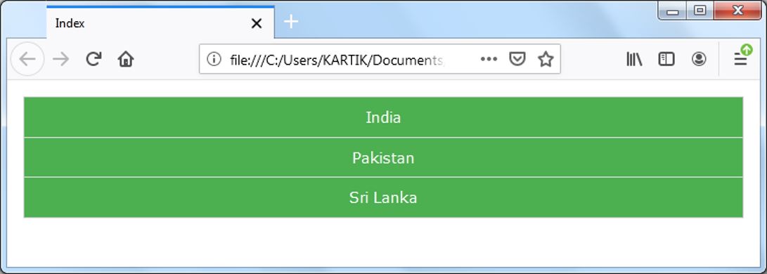 A general class w3-hoverable can be used with the <ul> tag to produce the hover effect on list items. We can also use w3-hover-color with individual <li> to produce hover effect of different colours on different list items