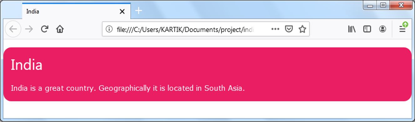 Here, the class w3-panel makes a panel and, the class w3-indigo puts an indigo background to the div.